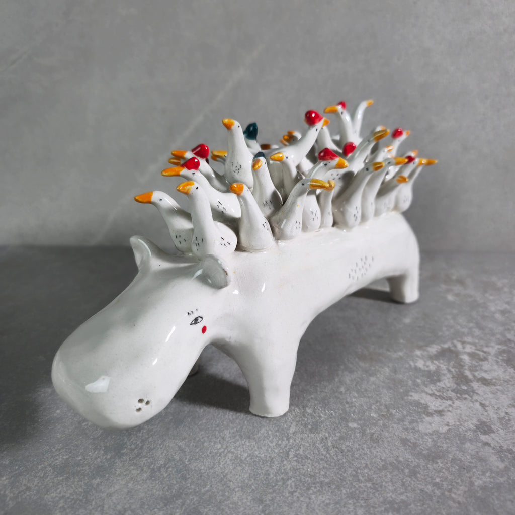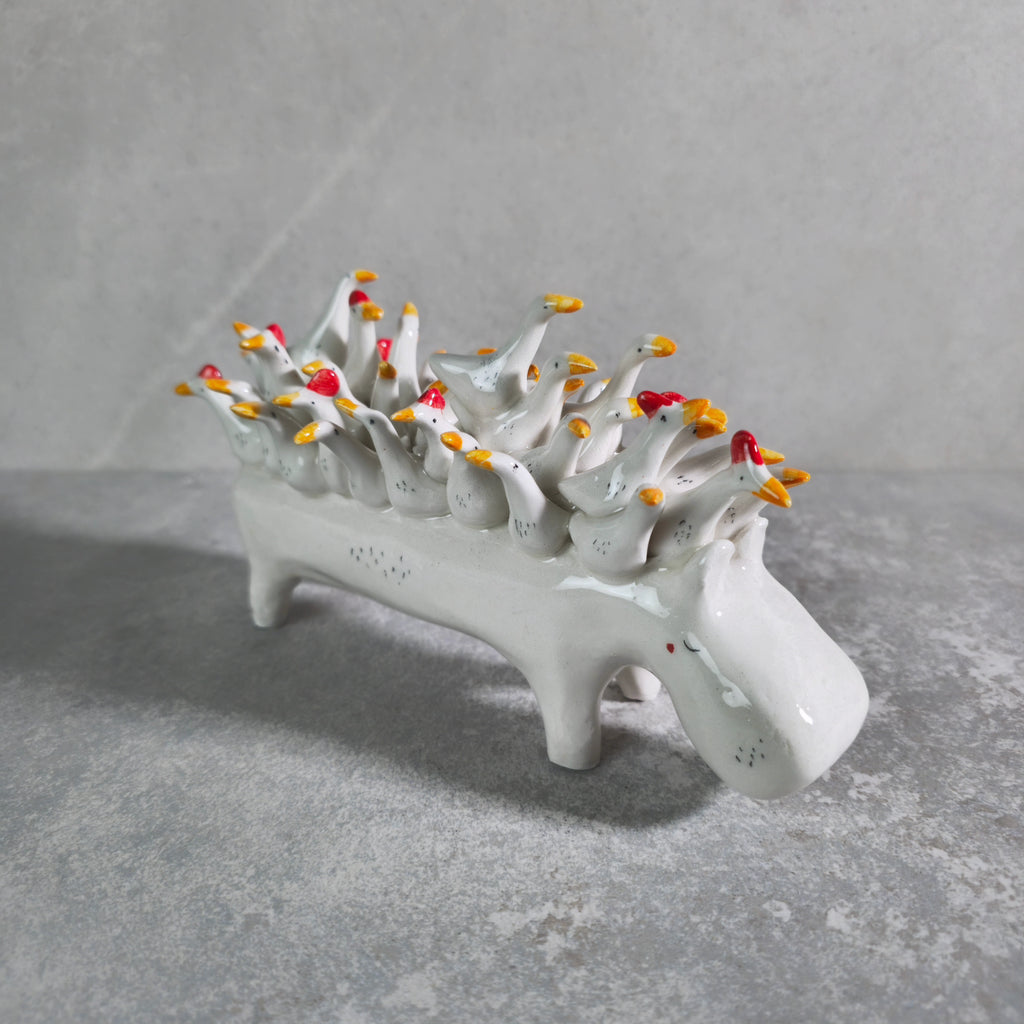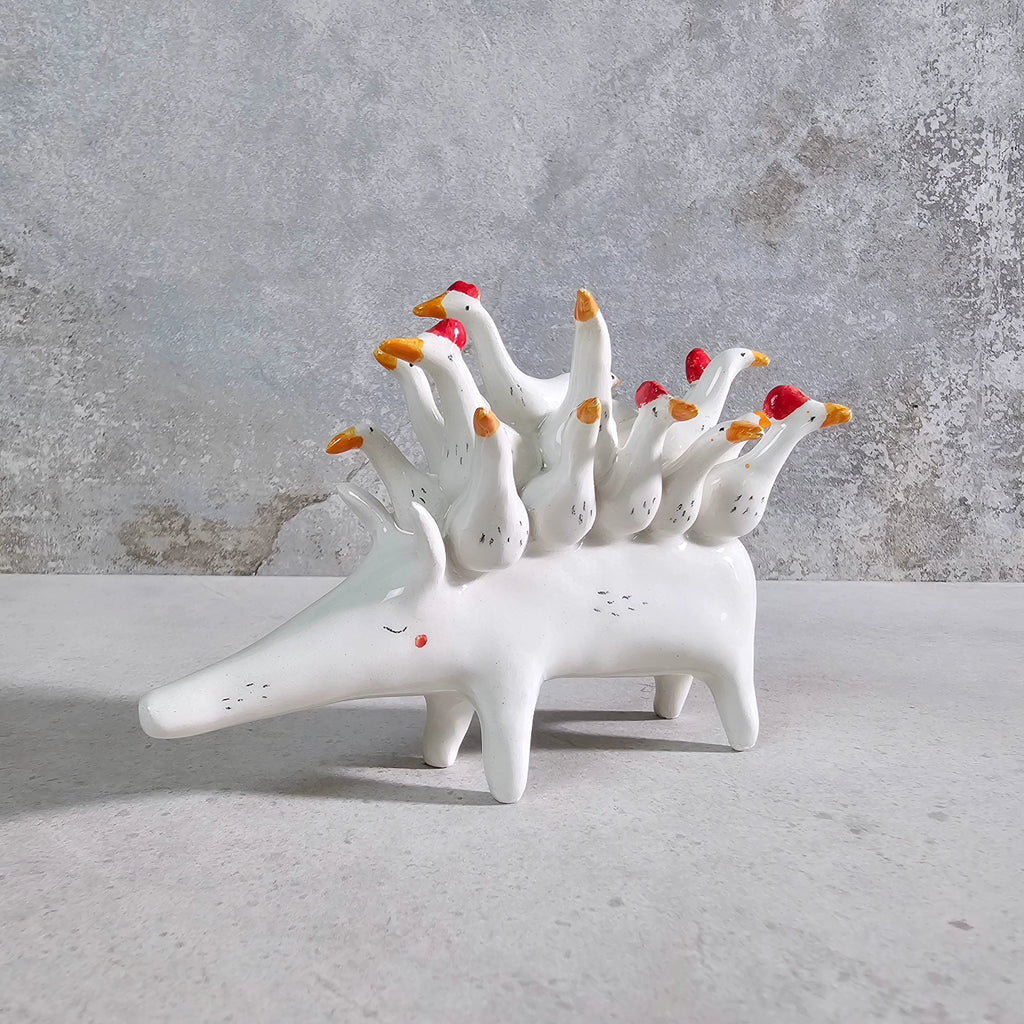 Realizzati in ceramica bianca, disegnati e vetrificati con smalto trasparente.