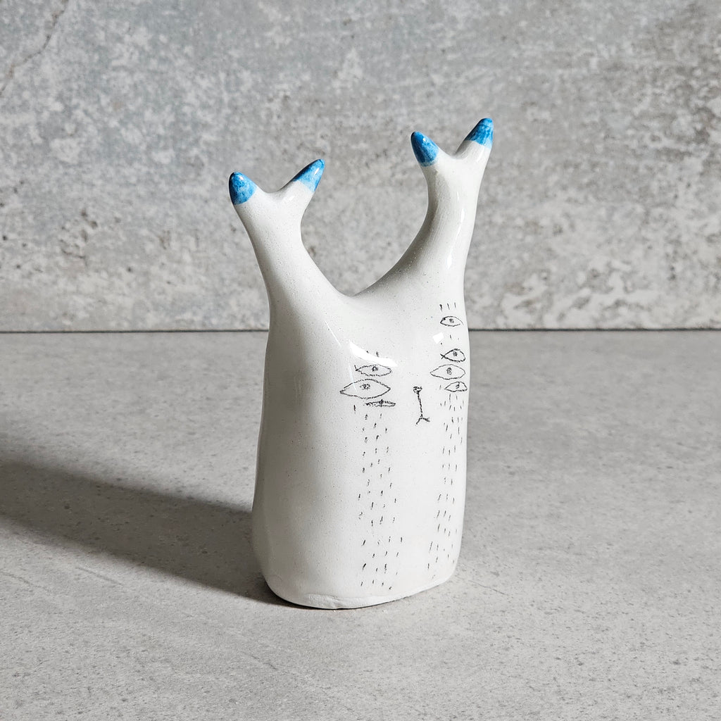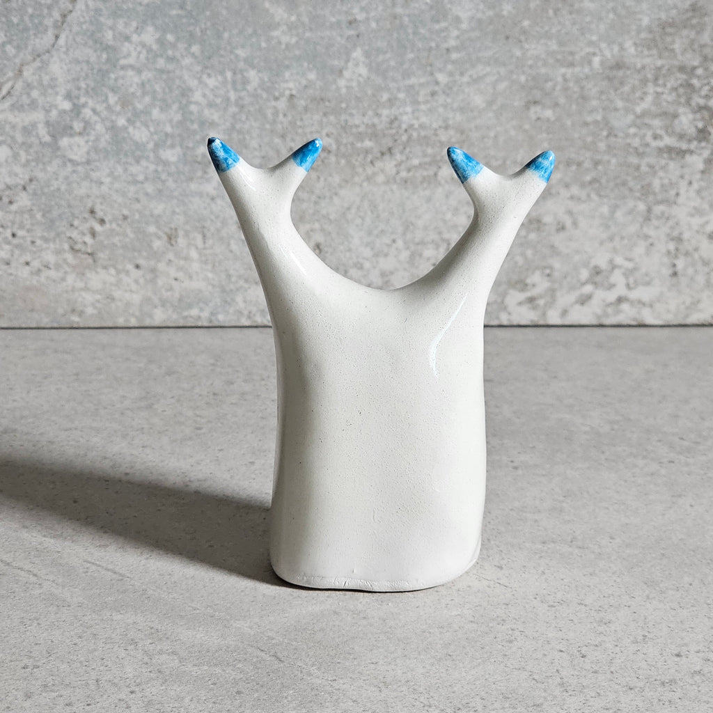 Realizzato in ceramica bianca, disegnato e vetrificato con smalto trasparente.