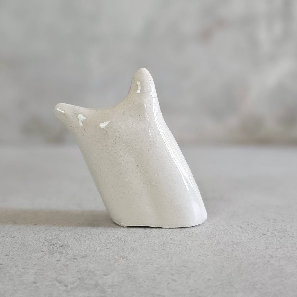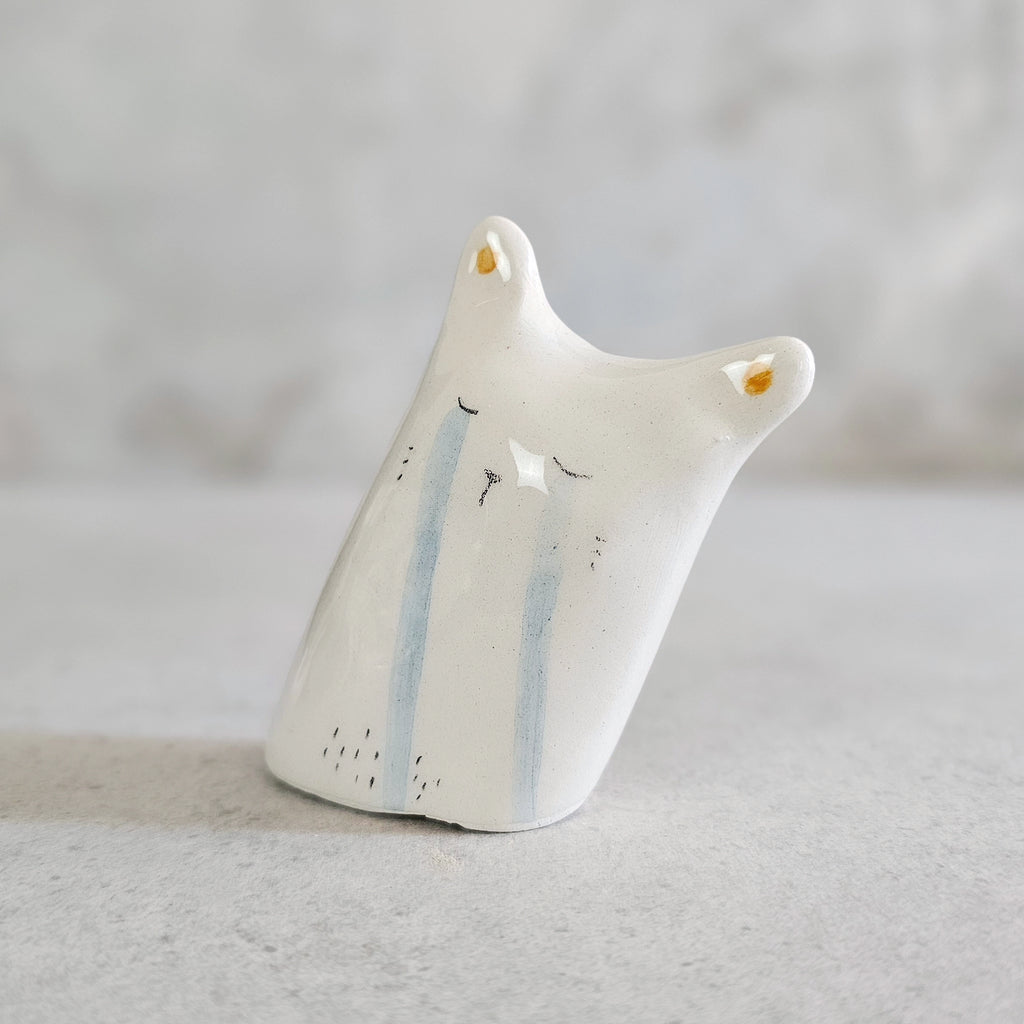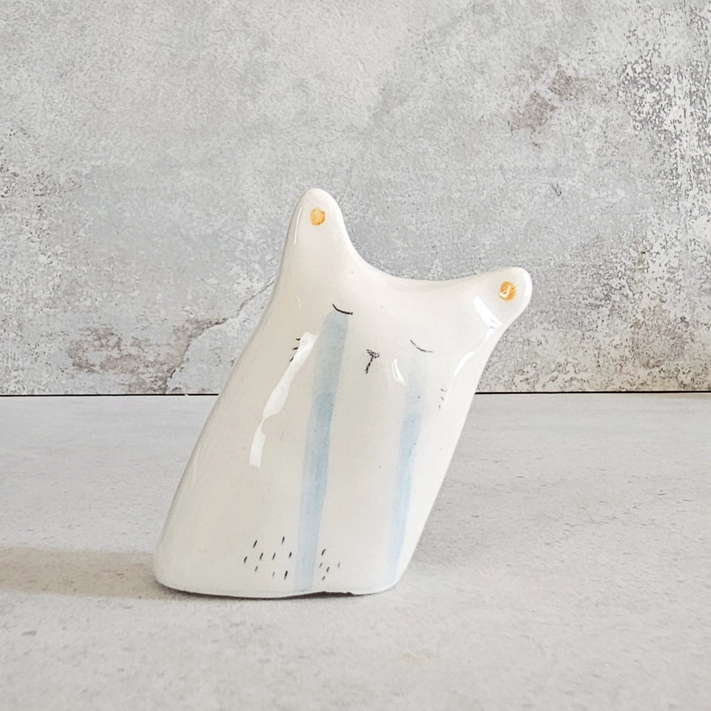 Scultura realizzata in ceramica bianca, decorata e vetrificata con smalto trasparente.