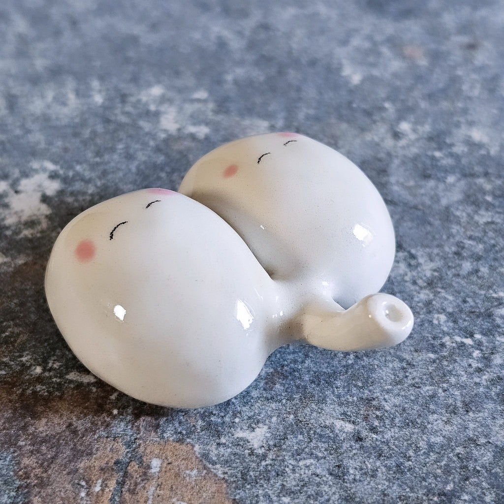 Realizzato in ceramica bianca, decorato e vetrificato con smalto trasparente.