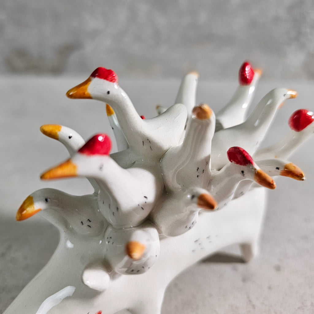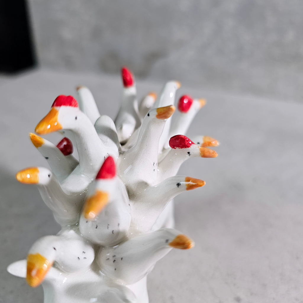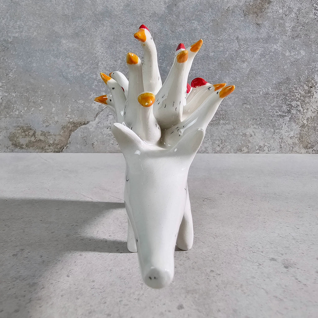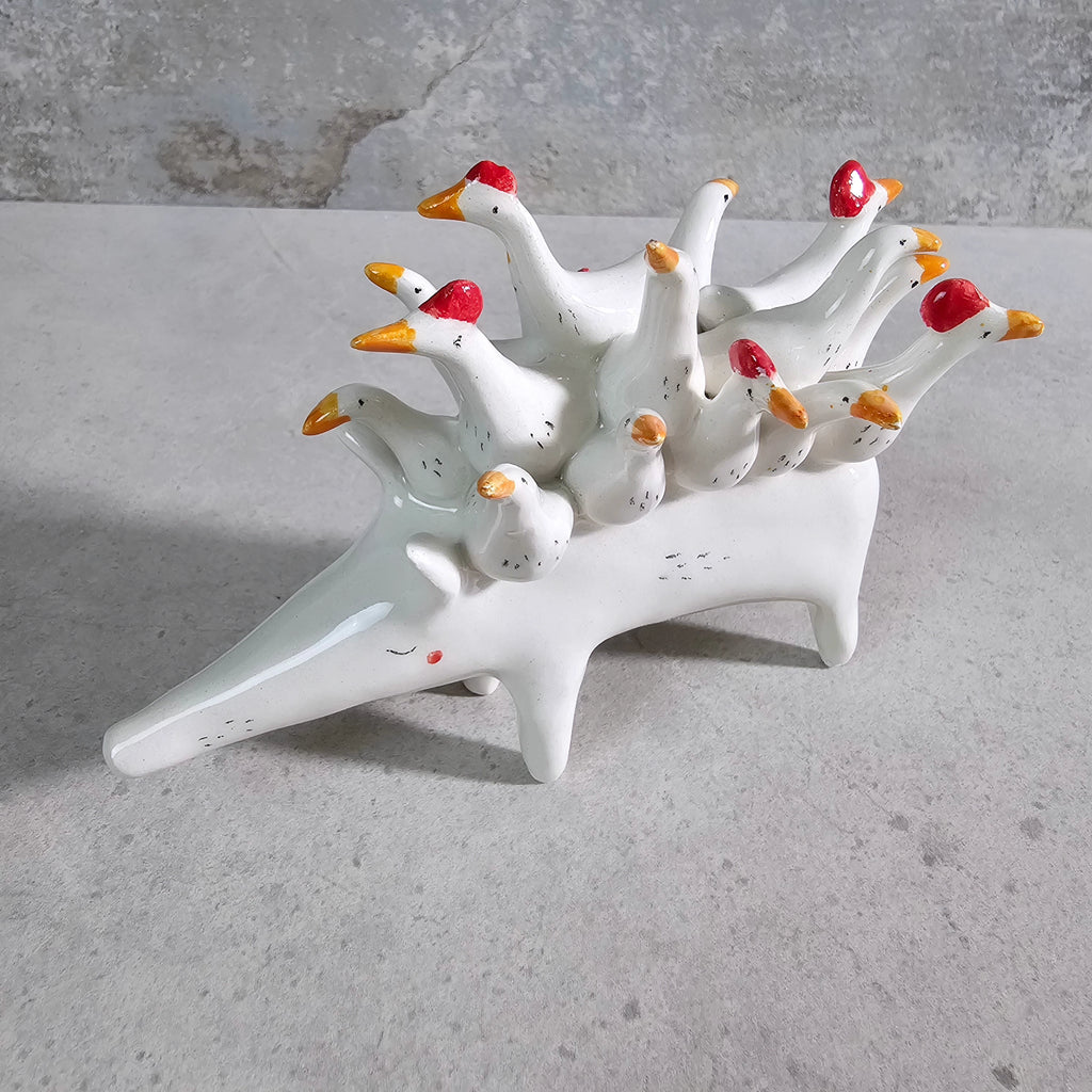 Sculpture made of white ceramic, decorated and glazed with transparent enamel.