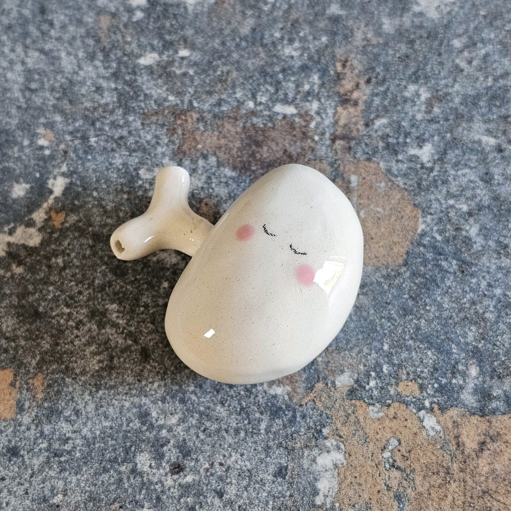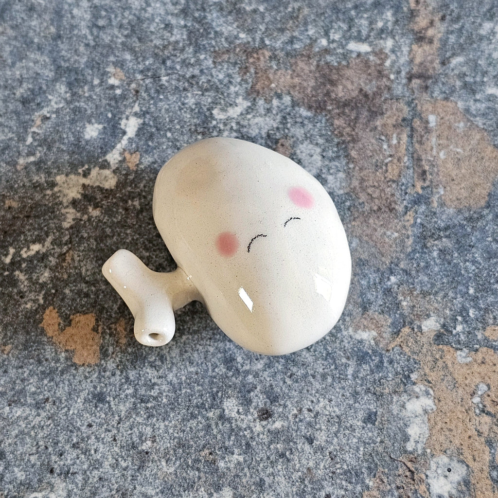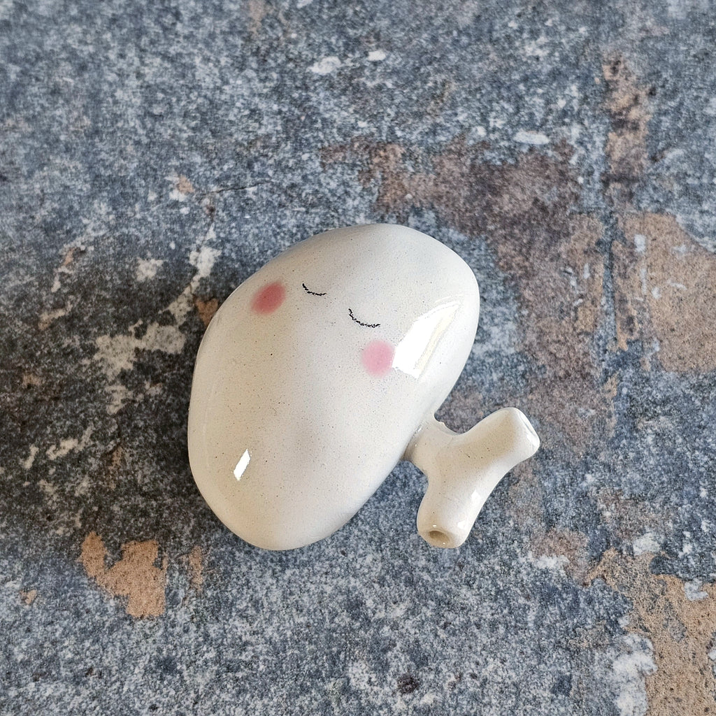 Realizzato in ceramica bianca, decorato e vetrificato con smalto trasparente.