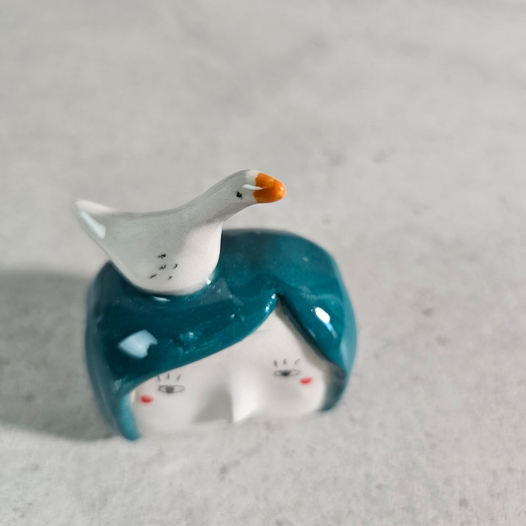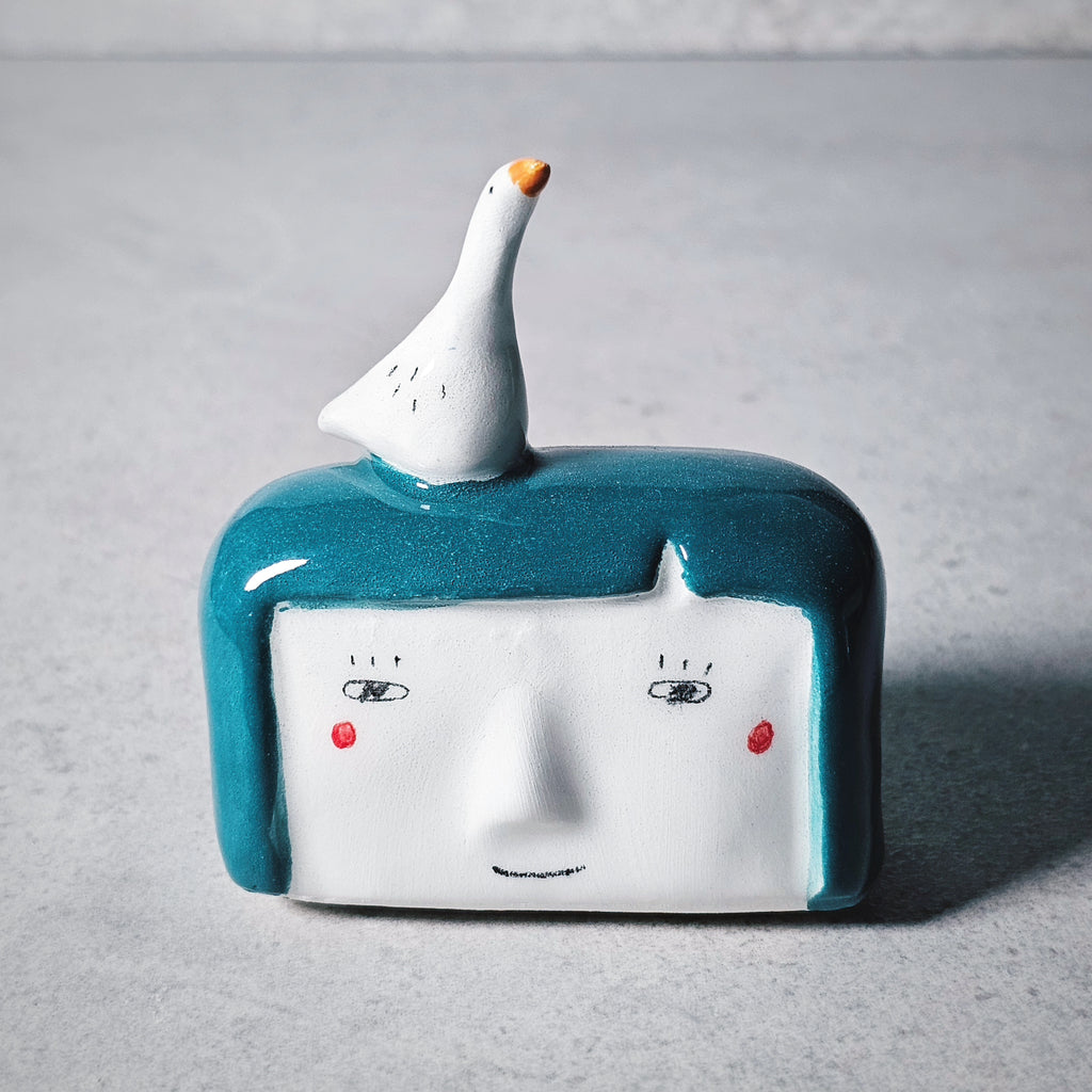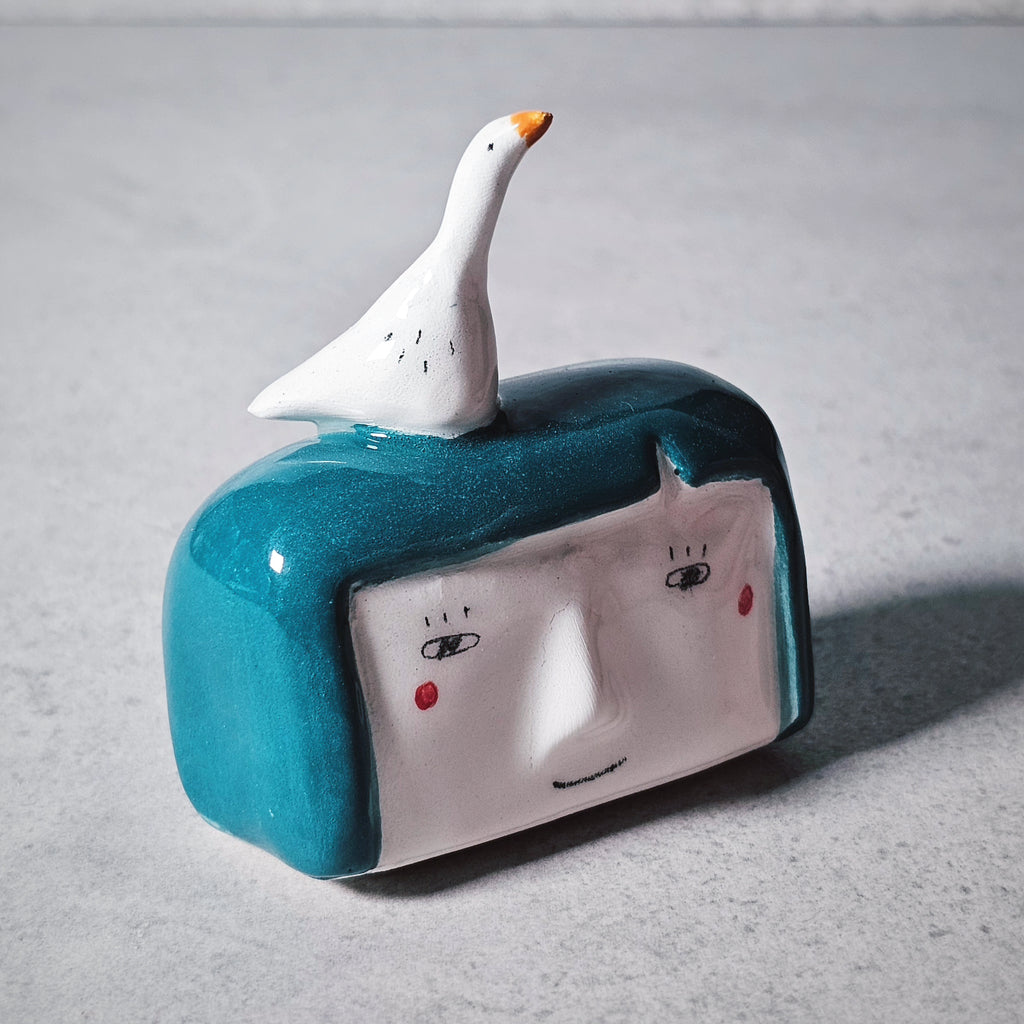 Scultura realizzata in ceramica bianca, decorata e vetrificata con smalto trasparente.