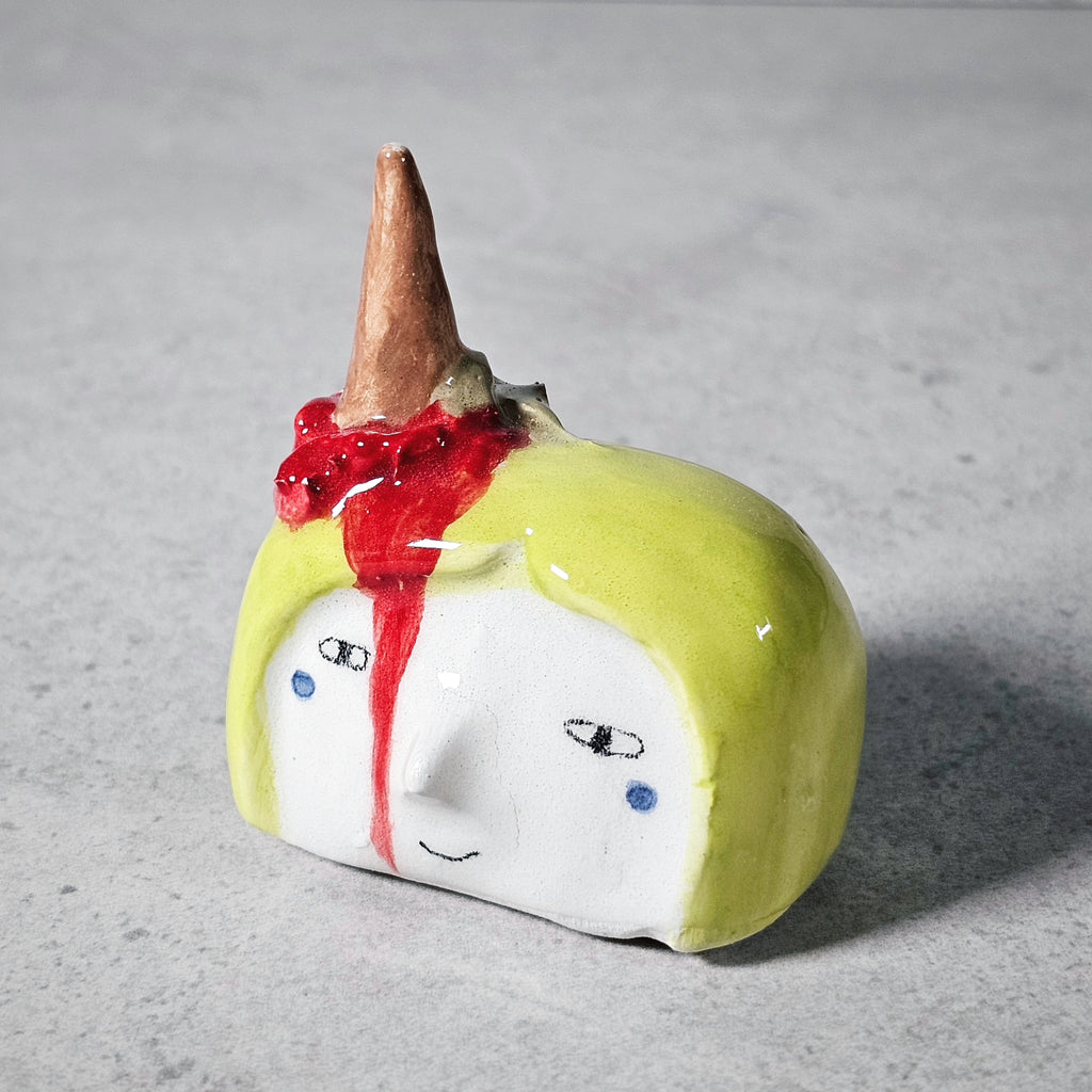 Scultura realizzata in ceramica bianca, decorata e vetrificata con smalto trasparente.